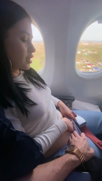 Туалет в самолёте был занят, поэтому она теребит прямо в салоне!